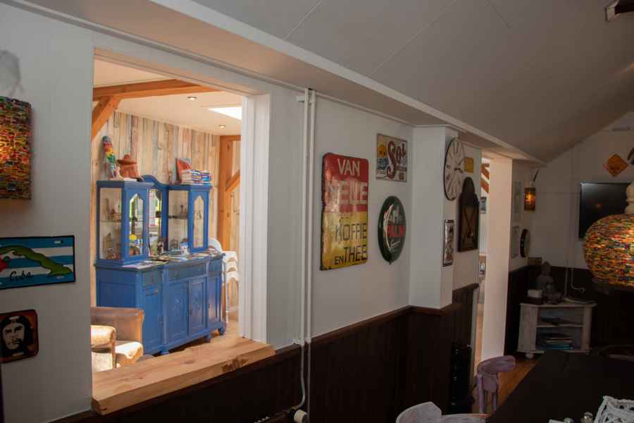 Bar, recreatieruimte en groot (deels overdekt) terras met haard Auberge le Monde - deze gezellige ruimte (apart, maar direct naast de vakantie boerderij gelegen) is net als de kamers thematisch ingericht. Buiten een deels overdekt terras met *haard. Een reis over de gehele wereld zo mag de vakantie boerderij en Auberge le Monde genoemd worden. Een terras met uitzicht over de weilanden, speeltuin, speelveld en nationaal park Drents-Friese Wold maakt het plaatje compleet.