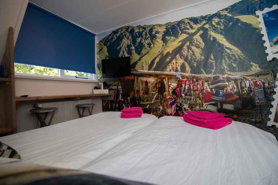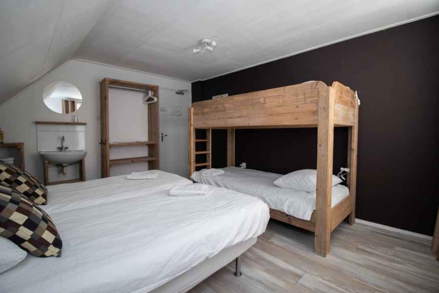 Overnachten kan in onze vakantieboerderij met 9 kamers/appartementen en geschikt tot maximaal 21 personen. Daar direct naast hebben wij Auberge le Monde met bar, recreatieruimte met groot terras is het centrale punt voor de groep. Het 3000m2 grote terrein heeft daarnaast nog een ruime tuin/boomgaard, speeltuin, speelveld, parkeergelegenheid, prachtig uitzicht op o.a. nationaal park Drents-Friese Wold, ruime schuur voor fietsen en motoren te stallen. E-bikes kunnen opgeladen en MTB's afgespoten worden.